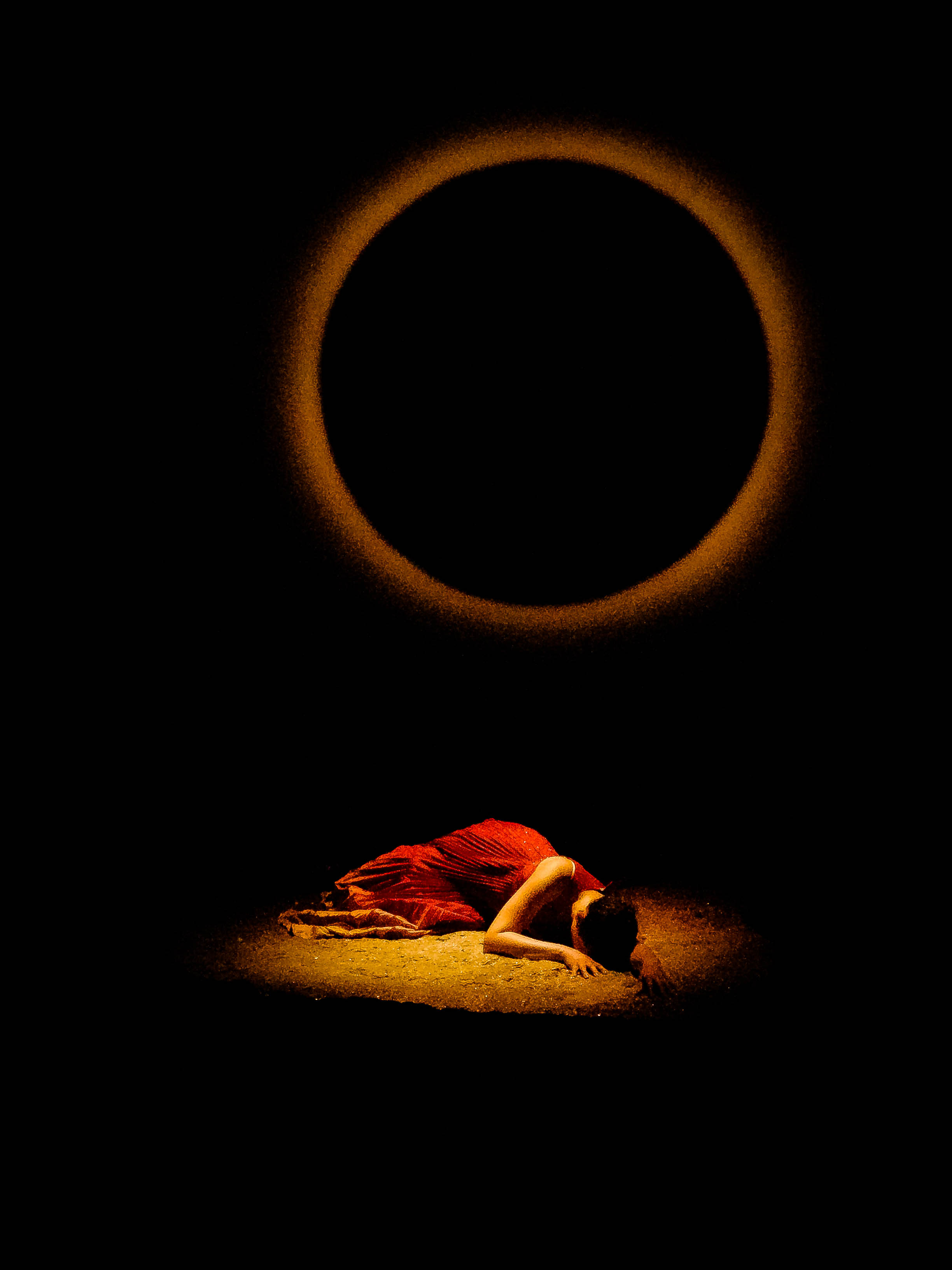 Ormai due anni fa, frequentavo ancora l’accademia ed ho partecipato ad un concorso che il conservatorio di Cesena ogni anno organizza insieme al corso di scenografia del melodramma dell’accademia di belle arti di Bologna. Non spenderò molte parole sul progetto in sè, dal momento che questa non è la sede per farlo e che avrei davvero molte cose da dire, semplicemente dico che la partecipazione a tale progetto ha fatto sì che fosse scelta la mia scenografia, permettendomi di firmare le mie prime scene e soprattutto di realizzare uno spettacolo vero e proprio, che ha debuttato in teatro con cantanti, orchestra, ballerini. Questo naturalmente non ha coinvolto non soltanto me, ma tantissime altre persone che mi sono state vicine guidandomi, spronandomi, demoralizzandomi a volte, appoggiandomi altre. La soddisfazione di vedere un proprio pensiero prendere forma è indescrivibile e io ancora oggi, vedendo l’eclissi di sole, non ho potuto evitare di pensare all’eclissi che chiudeva quella rappresentazione.