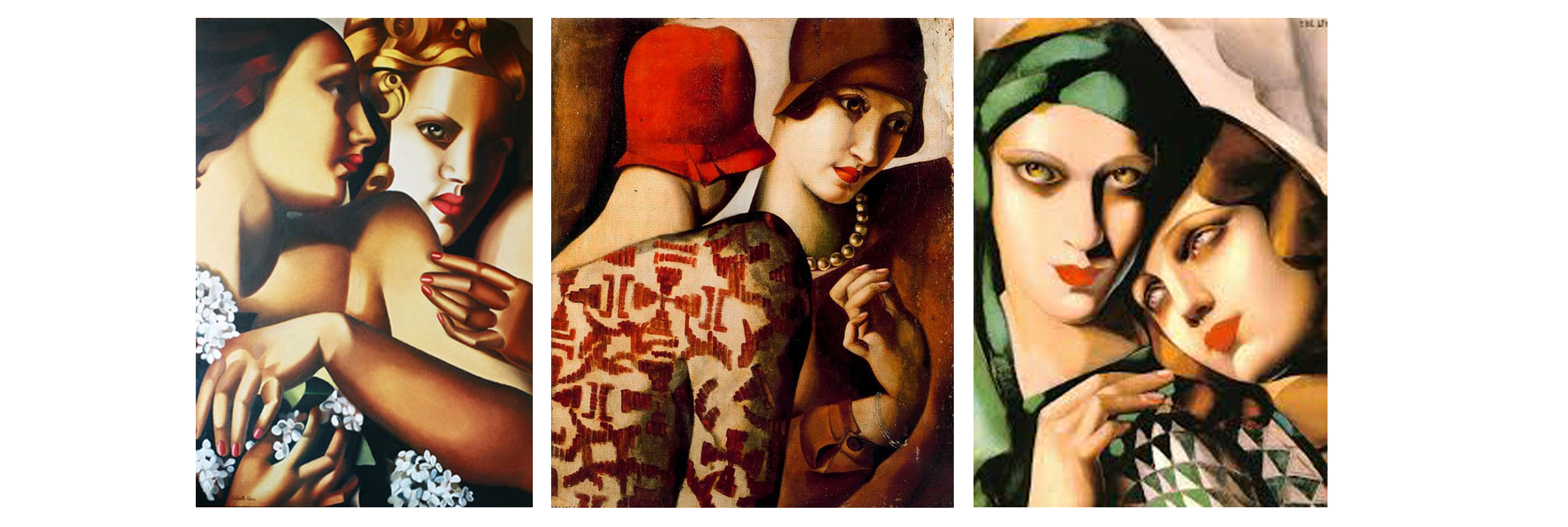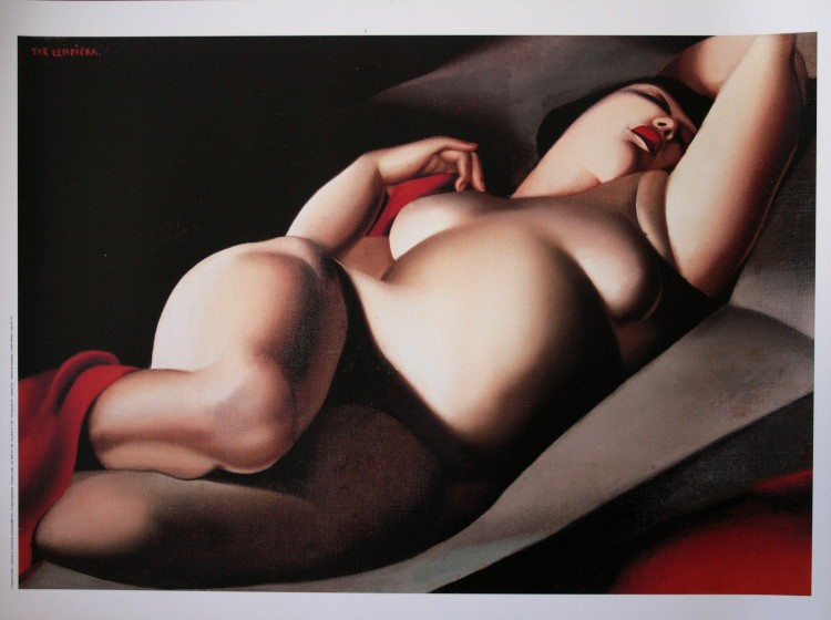 E’ forse questa una colpa? Secondo me è una scelta, più o meno condivisibile. Fatto sta che negli anni ’20 e ’30 ha partecipato a Parigi a salotti che vantavano tra i propri ospiti Joyce, Cocteau, Thornton Wilder, Poiret, Isadora Duncan, Colette, Gide, ha incontrato Marinetti ed avuto uno scambio epistolare nientemeno che con Terragni per farsi costruire una villa sul lago di Como. Quanto diversi potevano essere in fondo questi artisti tra loro? Inoltre, ognuno è libero di scegliere la propria strada e soprattutto la propria vita. Tamara ha dipinto, tanto, ed ha utilizzato tutto ciò che ha guadagnato per circondarsi di arte e buon gusto. Nelle non rare fotografie che ci sono rimaste sembra Greta Garbo nelle sue sottovesti di raso e con i boccoli girati sula fronte. Quello che la etichetta come artista eccentrica e lussuriosa sono i suoi nudi femminili, che trasudano sensualità, quella sensualità così vera e sottile che solo una donna è in grado di restituire; sono gli abiti belli ed eleganti in cui ritrae le sue modelle e con cui si ritrae, sono gli oggetti di cui si circonda, belle case, belle auto, tutti oggetti di un potere generalmente maschile, di cui lei si impossessa.