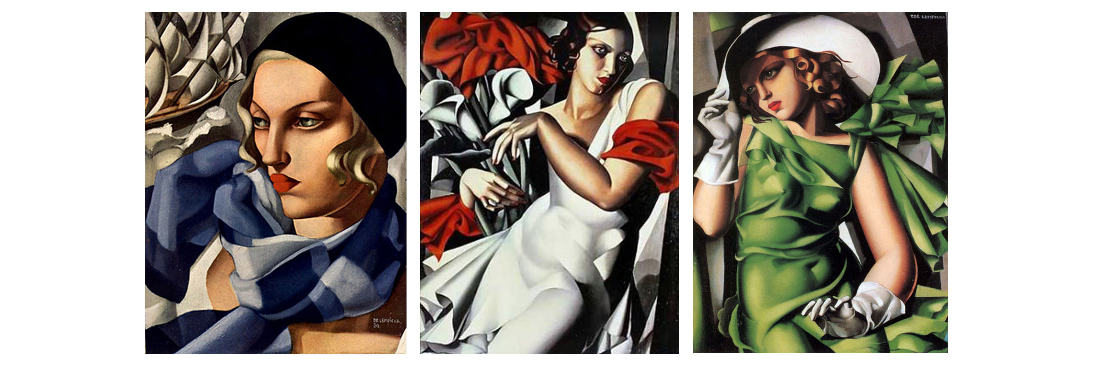 Fatto sta che guardando i suoi dipinti, io non credo che si pensi a tutte queste storie, alla sua vita ed alla sua ricerca di bellezza e piacere. Quello che traspare, forte e chiaro, dai ritratti degli anni ’20 e ’30, è la totale autonomia di stile e tratto. Tamara dipinge con una plasticità davvero poco sperimentata da altri: è stata in grado di rendere cubisti anche i soggetti più aristocratico-borghesi. Le sue forme tonde, su cui si possono chiaramente leggere luci ed ombre, sono diventate il suo tratto caratteristico ed unico, così come gli occhi, le labbra e gli sfondi grigi e spigolosi, quasi che i protagonisti fossero trasposti sul set di Metropolis in vestaglia odoppiopetto.