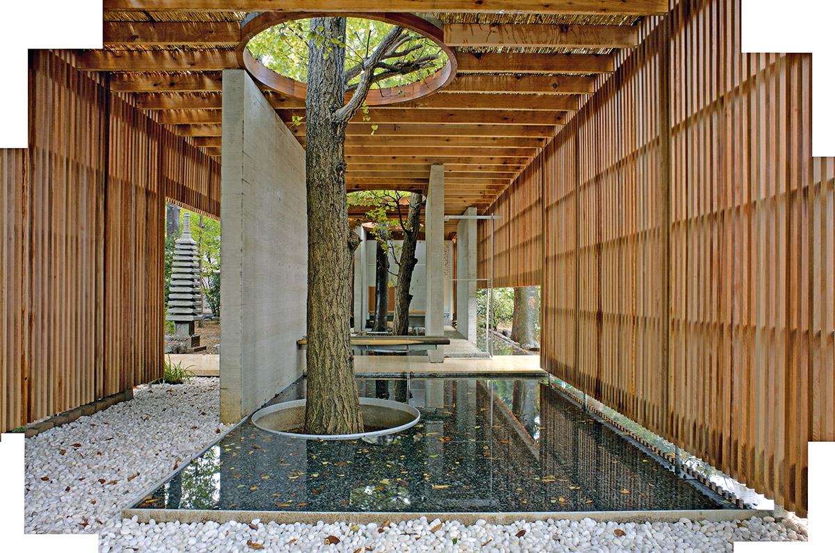 Il giardino, di suo, deve sempre contenere un sentiero di pietre che conduce allo tsukubai, il bacino in pietra naturale dove gli invitati si lavano mani e bocca, con l’acqua presente, prima di entrare, in segno di purificazione. I giardini giapponesi, al contrario di quelli all’italiana o all’inglese, tendono a loro volta a riprodurre la mutevole varietà del paesaggio naturale attraverso una composizione asimmetrica. L’enfasi è posta sul passaggio delle stagioni e sulla pluralità di punti di vista. L’acqua è un elemento essenziale e spesso presente, soprattutto se legato ad ambienti considerati sacri. Una delle espressioni più tipiche dei giardini giapponesi sono poi i giardini secchi, quelli che noi chiamiamo giardini Zen, in cui la scena è dominata da rocce accuratamente selezionate e ghiaia finissima rastrellata quotidianamente a creare eleganti motivi.